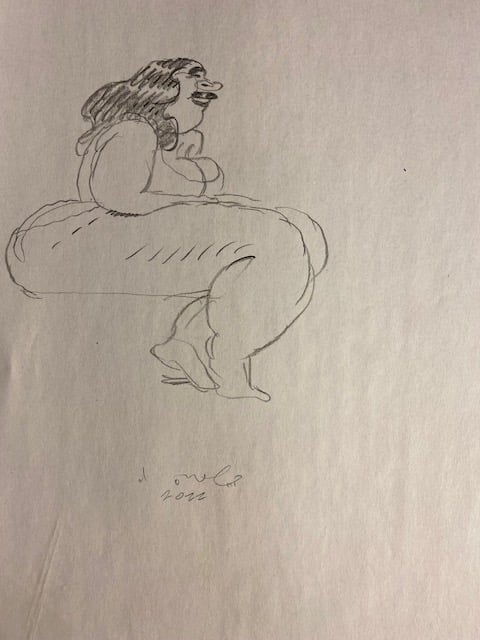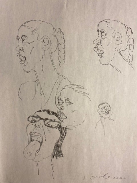 One selection from an on-going body of work- roughs drawn while fleshing out a project, aimless sketching to come up with new ideas, and warm-up doodles drawn from photographs.