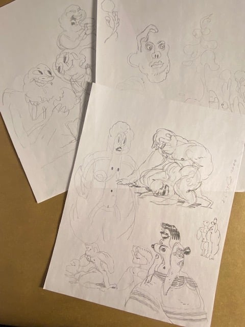 Each doodle is graphite on 8 1/2 x 11” printer paper