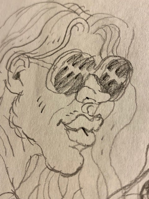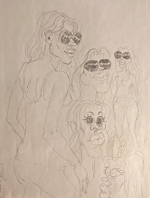 One selection from an on-going body of work- roughs drawn while fleshing out a project, aimless sketching to come up with new ideas, and warm-up doodles drawn from photographs.