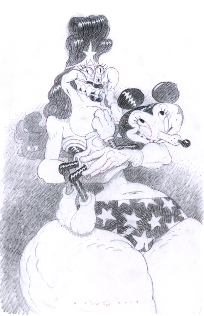 Graphite and red pencil on printer paper, some residual blue printer ink