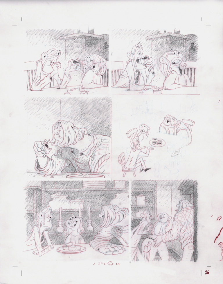 These pencilled iterations of comics pages are a very rough preparatory stage where I establish the details, and line flow, but without careful refinement. These are an intermediate stage, I think they have a unique, lively energy.