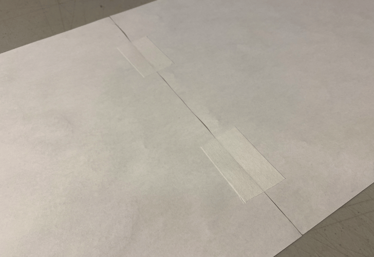 Two pieces of printer paper, taped together on the back with archival linen tape
