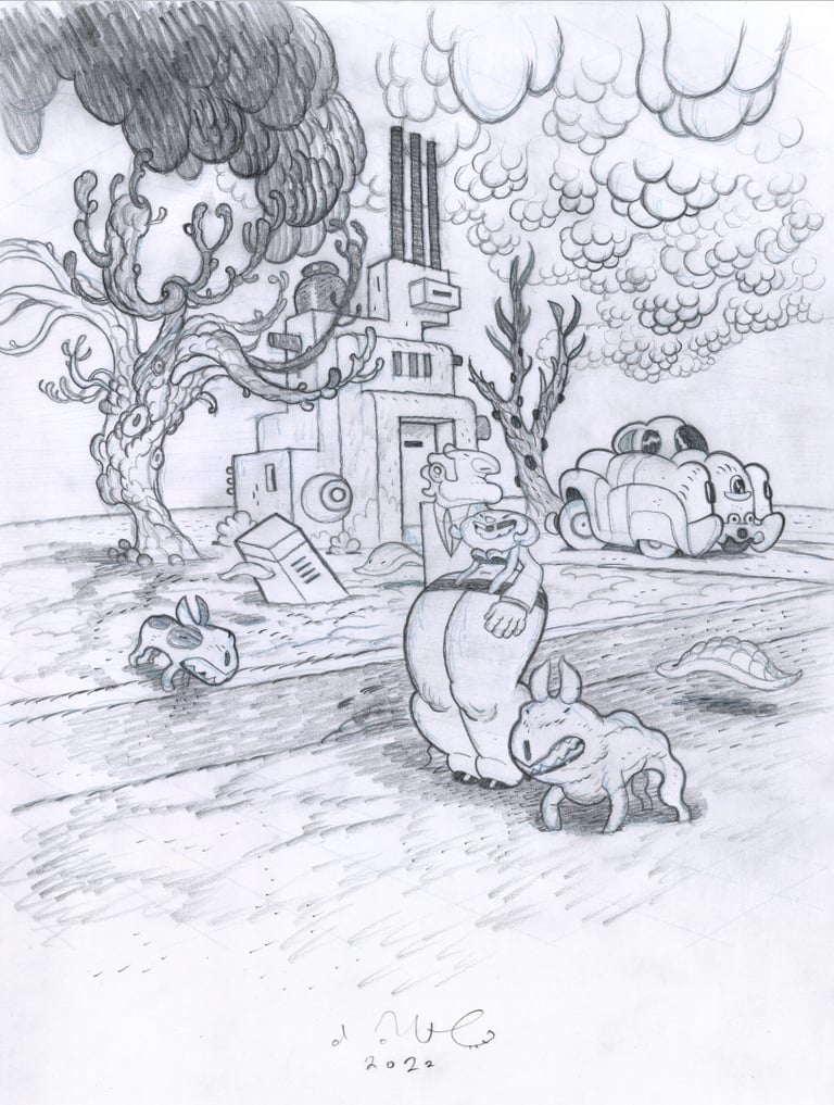 Preparatory sketch for my oil painting contribution to the 17th Annual BLAB! Show, Curated by Monte Beauchamp. FYI, I’ll be at the opening reception, Saturday, Sept 10th, 2022, 5 - 10pm. I hope to see you there