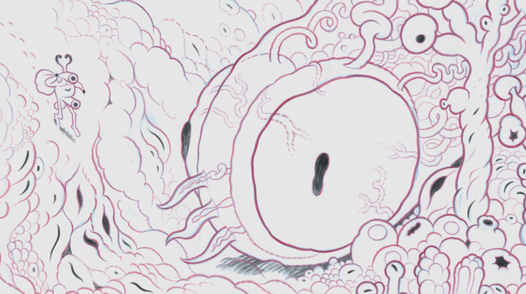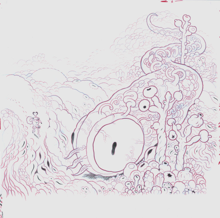 These Line Art pages are the final work that you see in the published book. In the old days they’d be called “inks”. But I don’t use ink for this final stage, I use the same drawing tools that I use for the “pencils” stage, but the result is very different because they’re drawn on a drawing surface called “Yupo paper”. Not paper at all in fact, but polypropylene. Crisper cleaner lines than the pencils. And a bit darker because of the way that Yupo paper receives the strokes and marks.