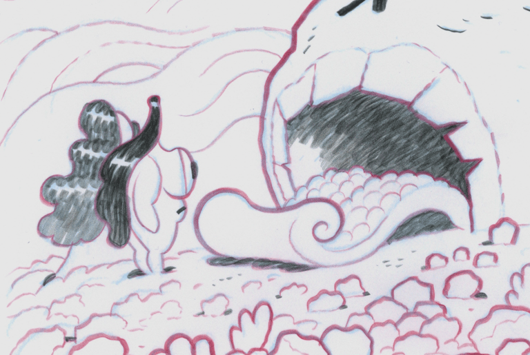 These Line Art pages are the final work that you see in the published book. In the old days they’d be called “inks”. But I don’t use ink for this final stage, I use the same drawing tools that I use for the “pencils” stage, but the result is very different because they’re drawn on a drawing surface called “Yupo paper”. Not paper at all in fact, but polypropylene. Crisper cleaner lines than the pencils. And a bit darker because of the way that Yupo paper receives the strokes and marks.