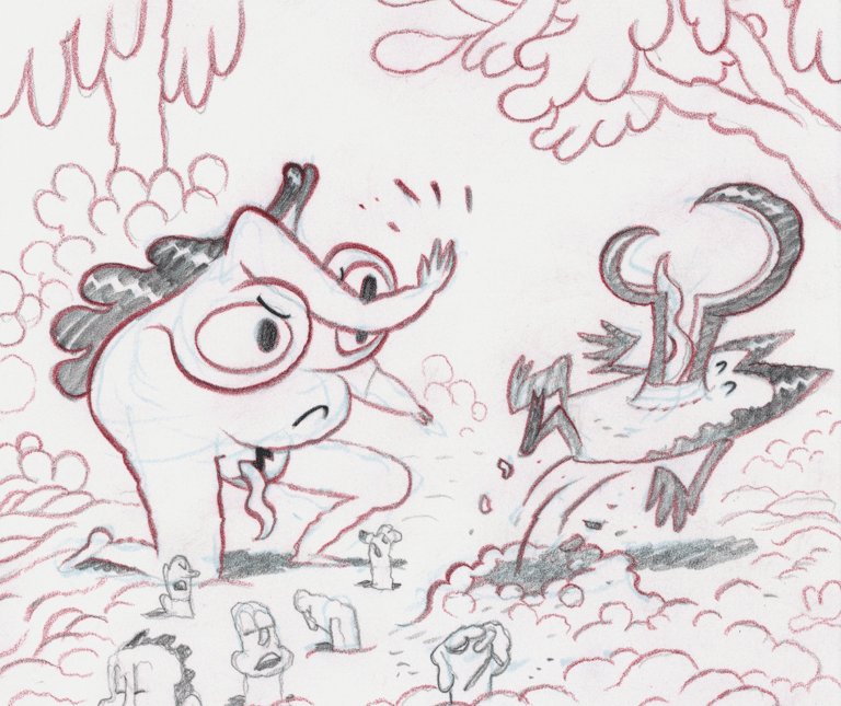 These pencilled iterations of comics pages are a very rough preparatory stage where I establish the details, and line flow, but without careful refinement. These are an intermediate stage, I think they have a unique, lively energy.